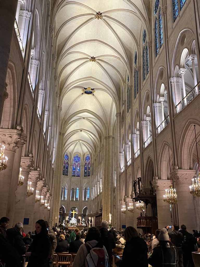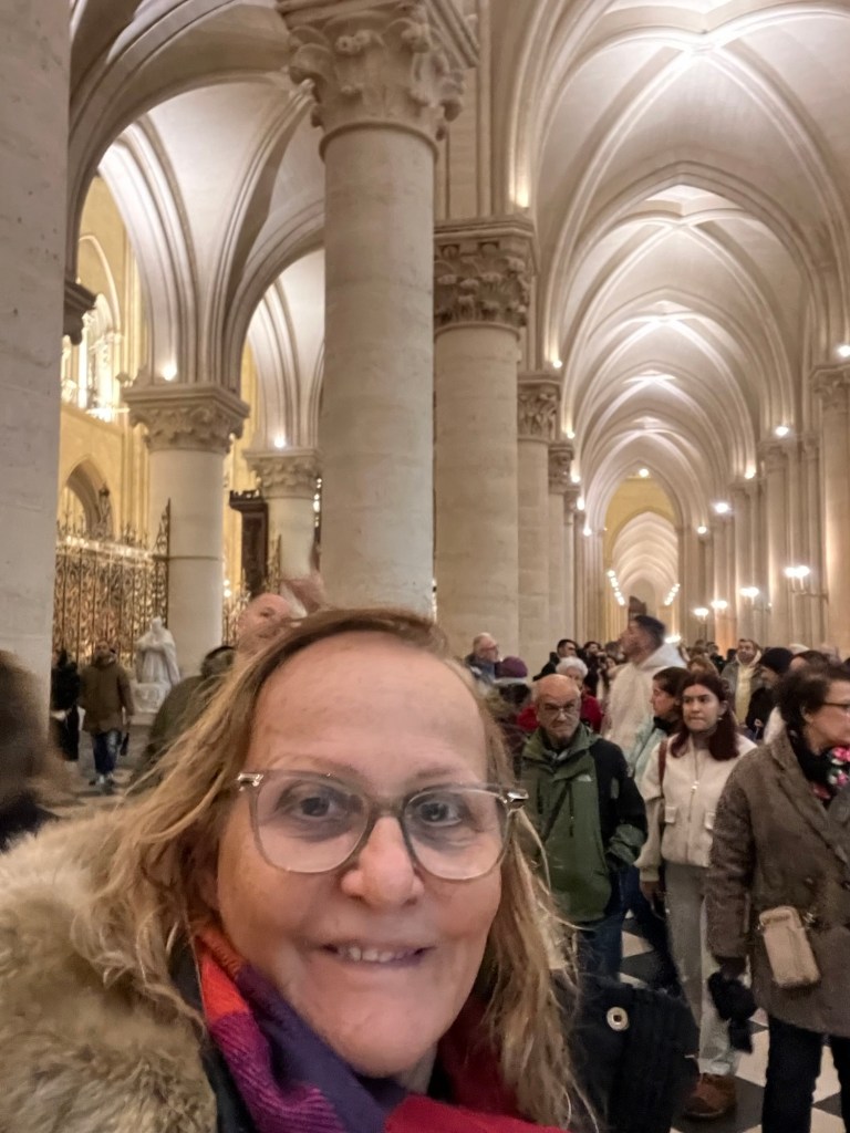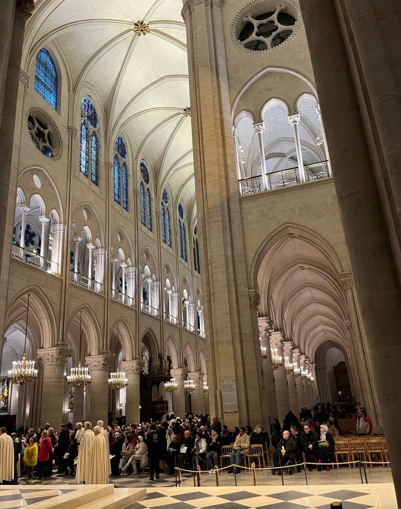 Da fila, eu estava emocionada por estar tão perto de voltar a ver um dos meus monumentos preferidos em Paris… e sobretudo de voltar a pisar na catedral… Ainda tive a graça de presenciar ao vivo, uma missa que acontecia naquele momento. Gratidão!