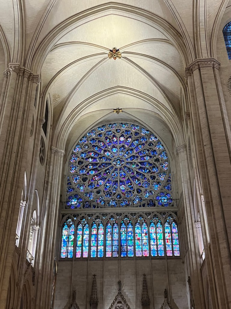 suas gigantescas colunas, as rosáceas, as abóbadas de nervuras, os arcobotantes… admirar o órgão principal, seus vitrais deslumbrantes e apreciar as gárgulas de pedra esculpida. Tudo é maravilhoso!