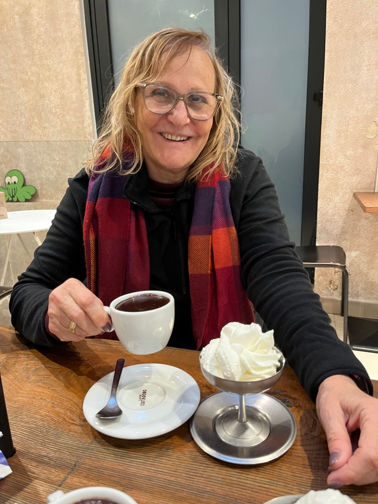 Gosto muito deste bairro. Sempre venho aqui. Parei e tomamos um chocolate quente que estava divino, acompanhado por um croissant de chocolate, pra descansar um pouco antes de retornar para casa. Sempre tive vontade de parar nas pequenas mesas típicas de Paris, e curtir calmamente o local sem neuras or stress… tenho conseguido fazer isto muitas vezes atualmente.