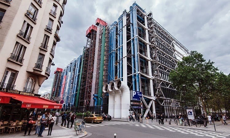 Conhecido também como Beaubourg, o #centrogeorgespompidou é um choque visual na paisagem parisiense. No meio dos velhos prédios, aparece sua imensa estrutura de metal e tubulações, com escadas rolantes externas, cores vermelhas e transparências, acabou causando polêmica nos anos 70, quando foi inaugurado.