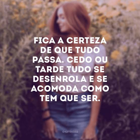 Tudo passa. Tenha calma. No lugar da ferida se renova a pele, no lugar da dor se refaz o amor, no lugar da perda se refaz a esperança. E é pelas esperas que se refaz um coração. Tudo passa quando a gente se aquieta. Tudo se refaz quando a gente acredita… Assim como Cecília Sfalsin eu tenho certeza que tudo passa!